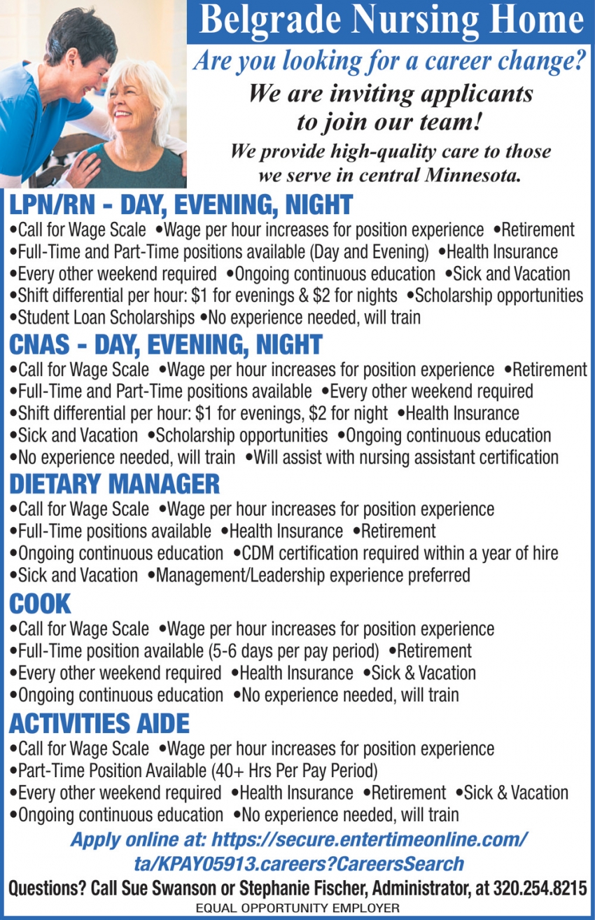 Jul 28, 2024. Belgrade Nursing Home Jobs Ads from Aitkin Independent Age