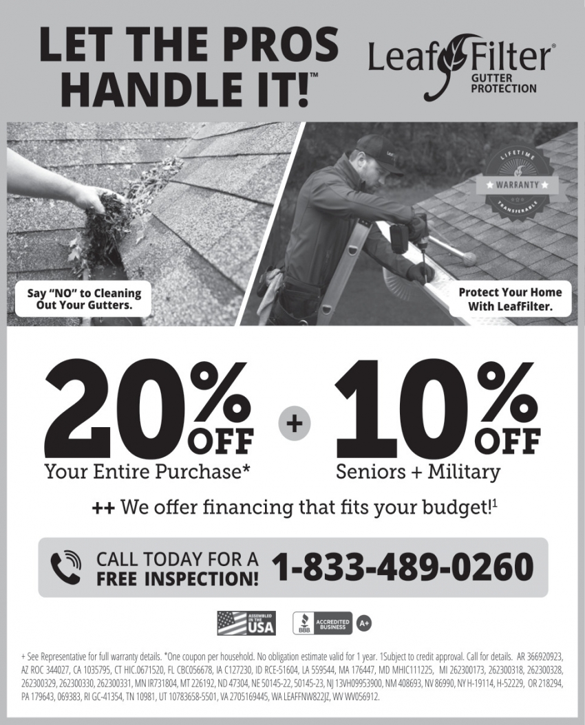 Oct 16, 2024. Leaf Filter Home Improvements Ads from Aitkin Independent Age