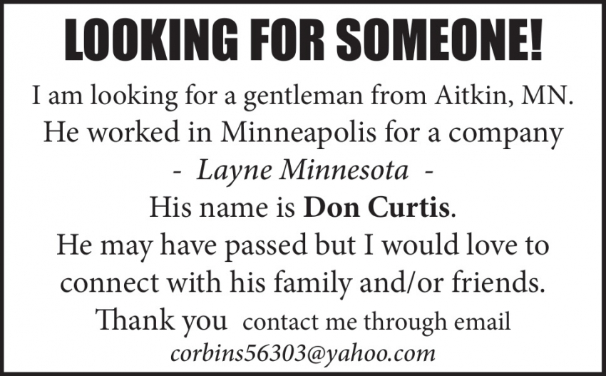Sep 10, 2025. Bonnie E. Corbins Misc Ads from Aitkin Independent Age