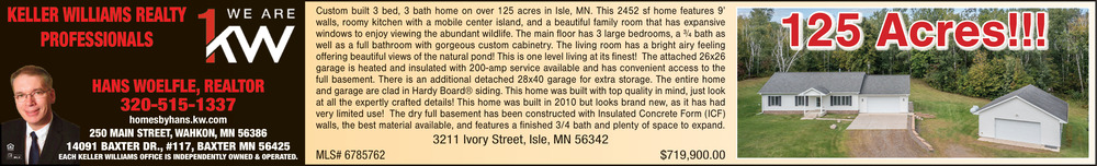Oct 01, 2025. Keller Williams Realty Professionals - Hans Woelfle Real Estate Ads from Mille Lacs Messenger