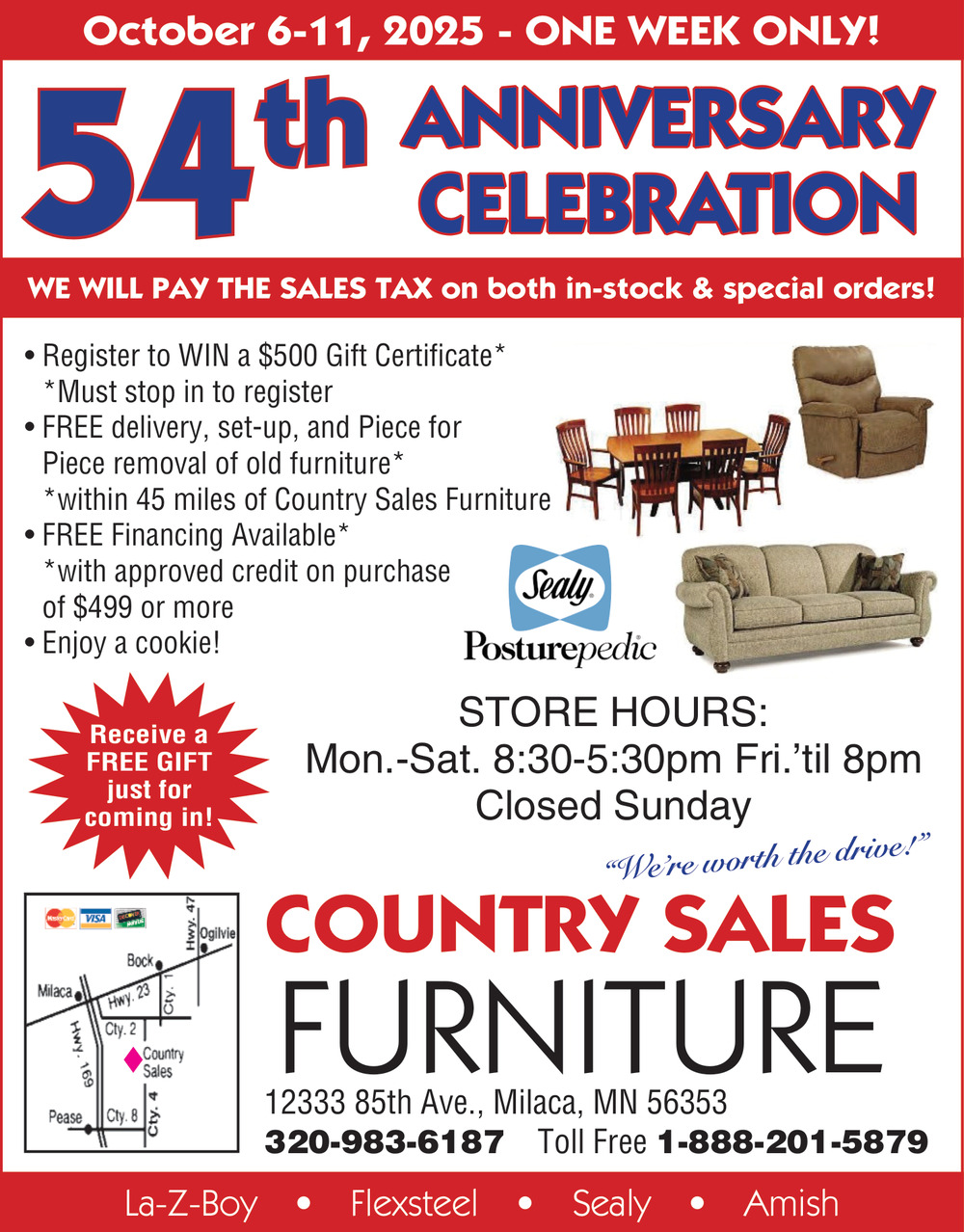 Oct 01, 2025. Country Sales Furniture Home Furnishing Ads from Mille Lacs Messenger