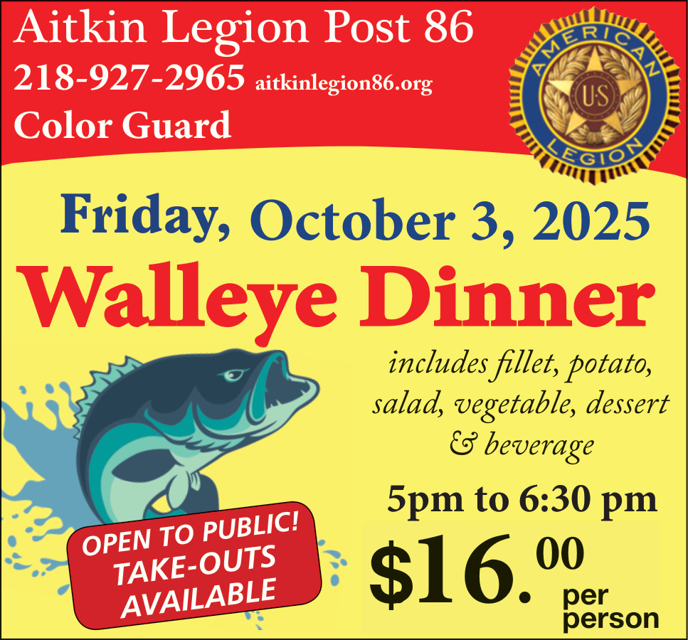 Oct 01, 2025. Aitkin Legion Post 86 Restaurant Ads from Aitkin Independent Age