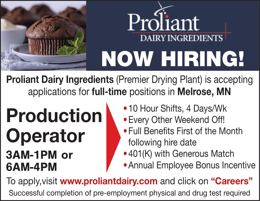 Sep 20, 2025. Proliant Dairy Ingredients Jobs Ads from Aitkin Independent Age