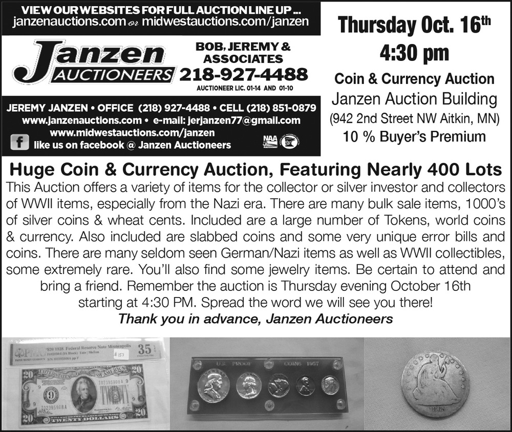 Oct 08, 2025. Janzen Auctioneers Auction Ads from Mille Lacs Messenger