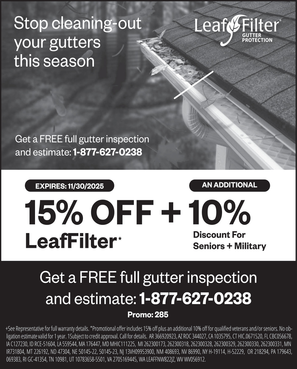 Oct 15, 2025. Leaf Filter Home Improvements Ads from Aitkin Independent Age