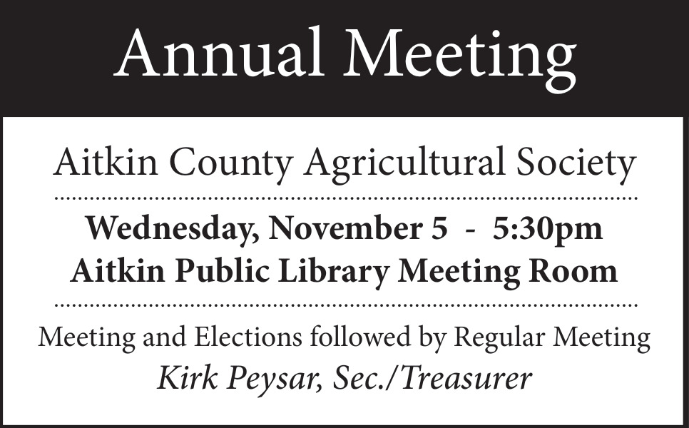 Oct 22, 2025. Aitkin County Agricultural Society - Annual Meeting Events Ads from Aitkin Independent Age