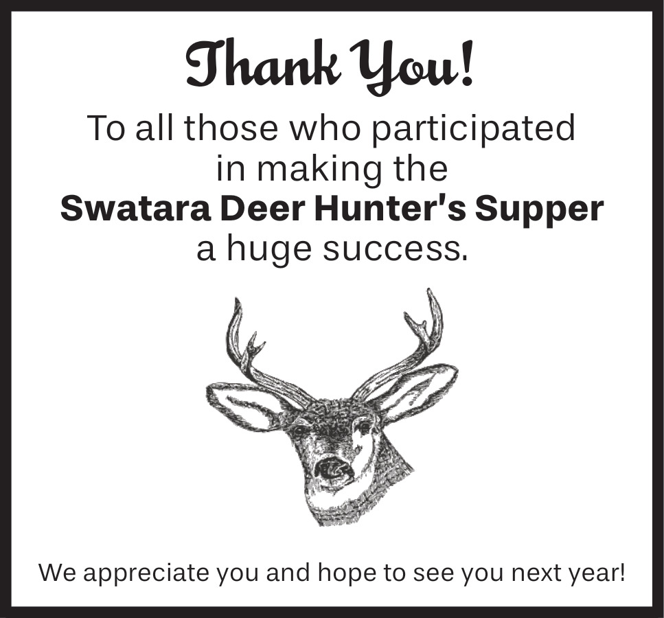 Nov 12, 2025. Swatara Deer Hunter's Supper Organizations Ads from Aitkin Independent Age