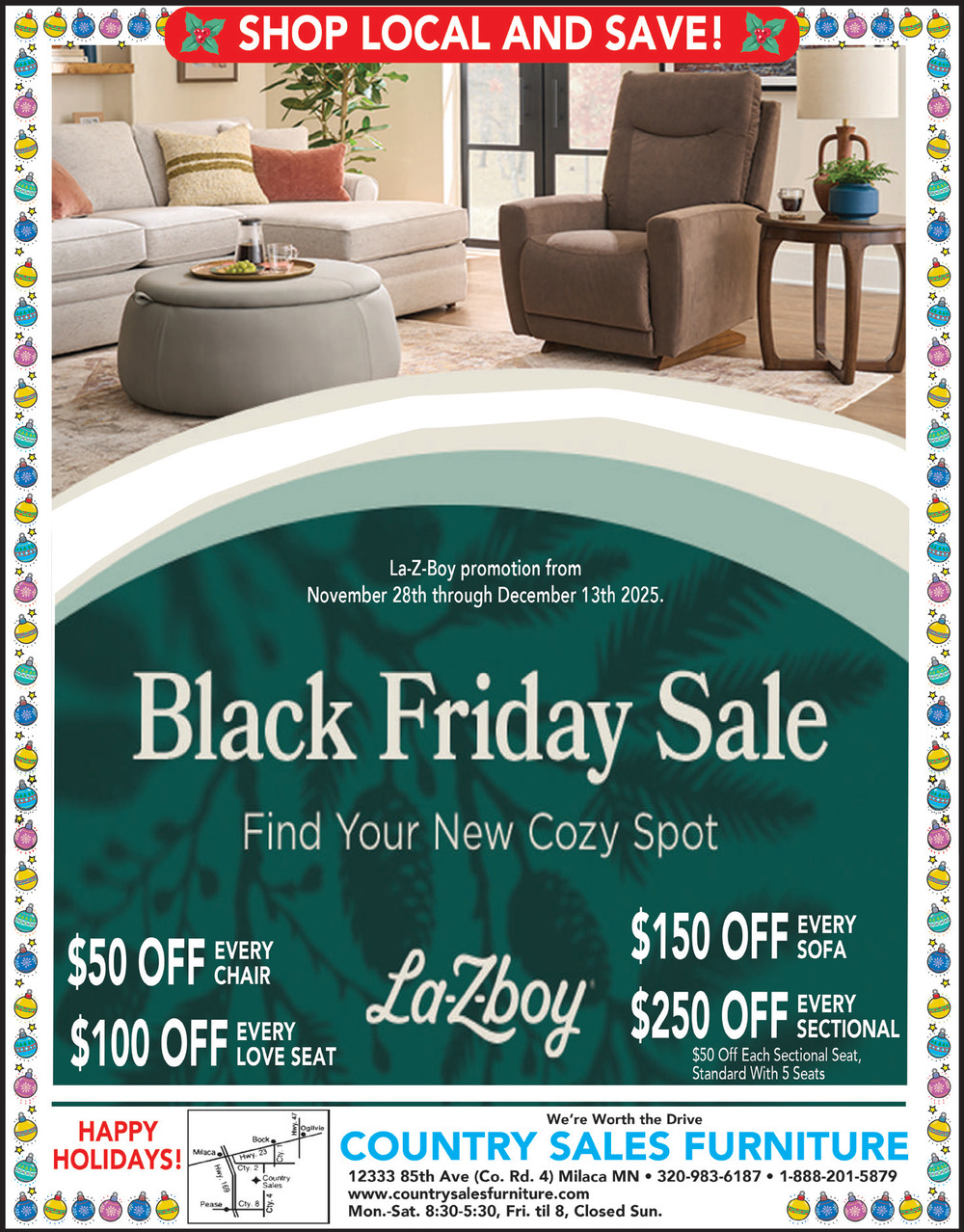 Nov 26, 2025. Country Sales Furniture Home Furnishing Ads from Mille Lacs Messenger