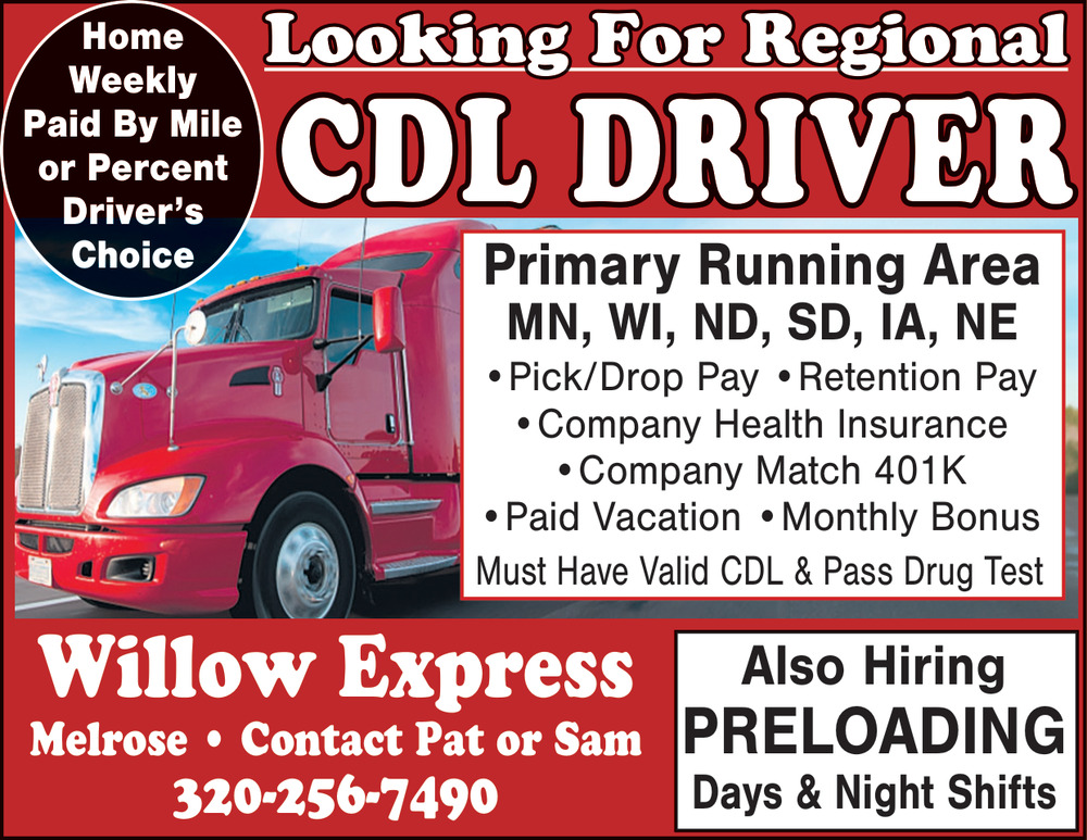 Nov 09, 2025. Willow Express Jobs Ads from Aitkin Independent Age