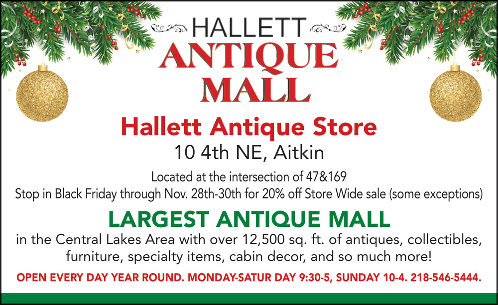 Nov 22, 2025. Hallett Antique Mall Antiques Ads from Aitkin Independent Age