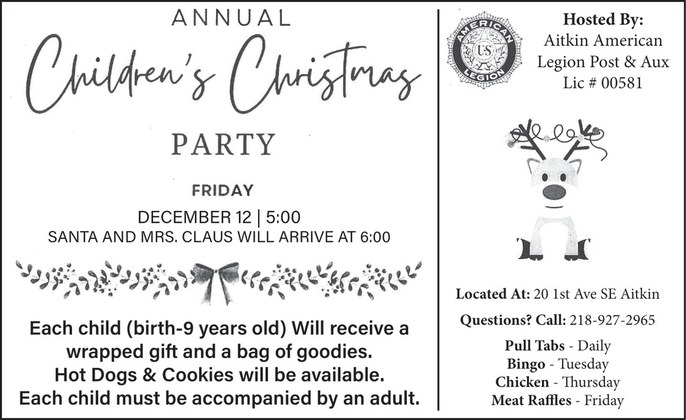 Dec 03, 2025. Aitkin Legion Post 86 Restaurant Ads from Aitkin Independent Age