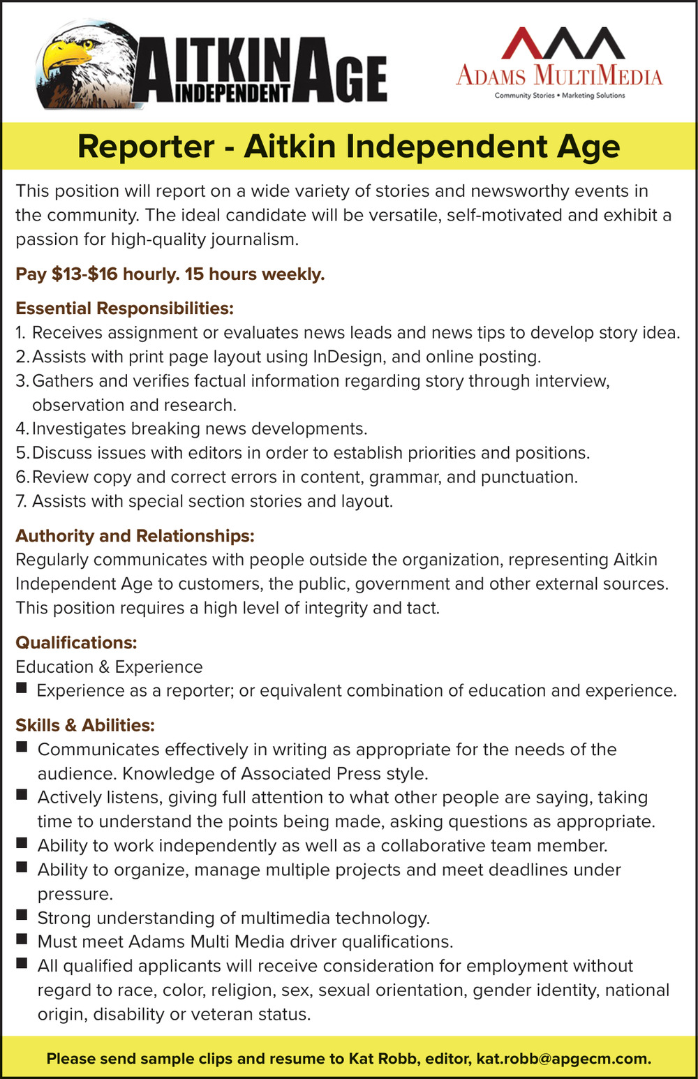 Nov 20, 2025. Aitkin Independent Age Jobs Ads from Mille Lacs Messenger
