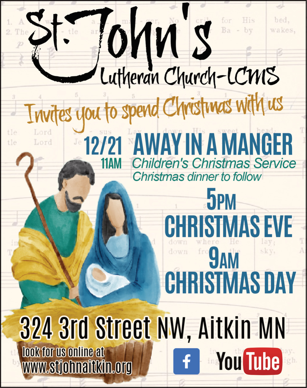 Ads for St. John's Lutheran Church in Aitkin, MN