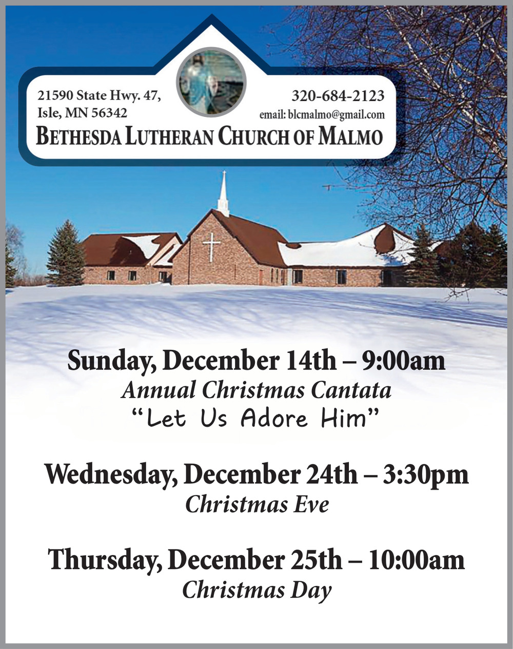 Dec 10, 2025. Bethesda Lutheran Church of Malmo Events Ads from Mille Lacs Messenger