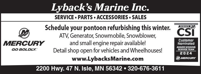 Dec 17, 2025. Lyback's Marine, Inc Boats Ads from Mille Lacs Messenger