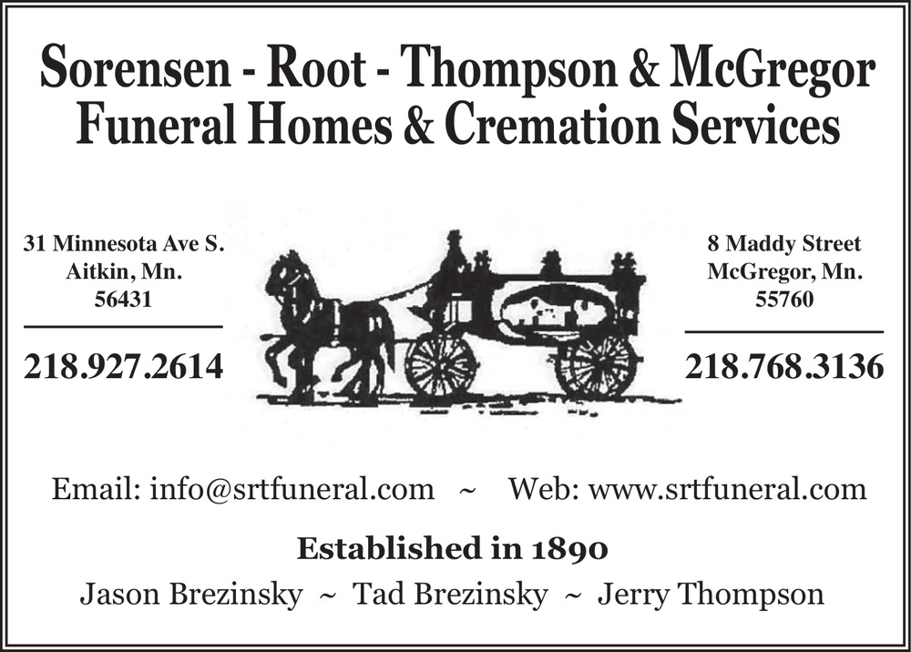 Jan 28, 2026. SRT Sorensen-Root-Thompson Funeral Ads from Aitkin Independent Age
