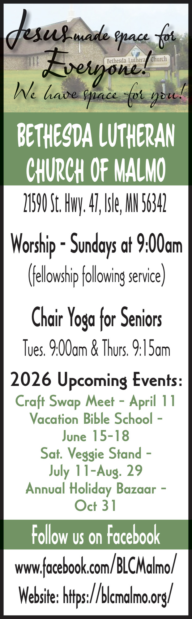 Feb 25, 2026. Bethesda Lutheran Church of Malmo Events Ads from Aitkin Independent Age