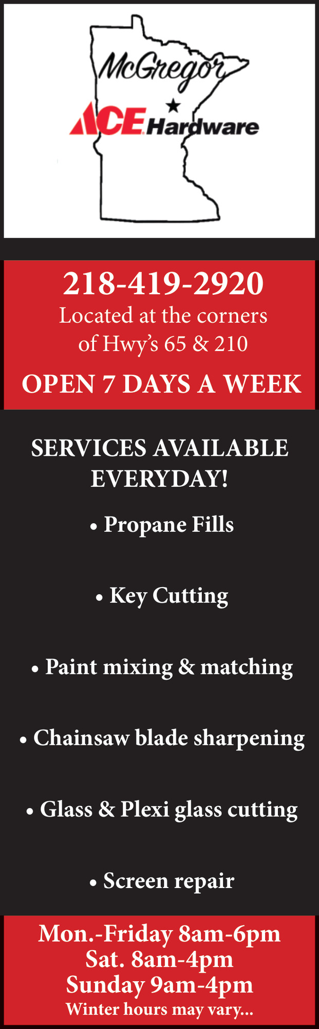 Feb 25, 2026. McGregor Ace Hardware Hardware Ads from Mille Lacs Messenger