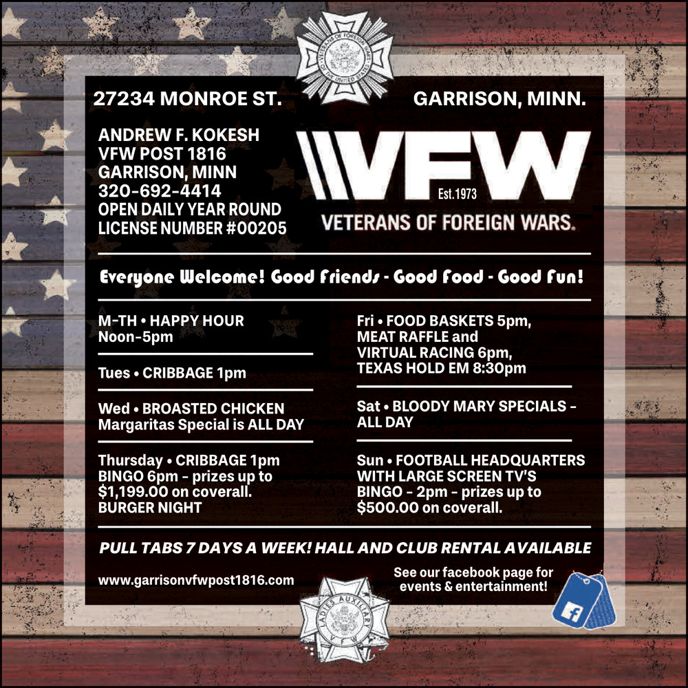 Feb 25, 2026. Garrison VFW Post 1816 Organizations Ads from Mille Lacs Messenger