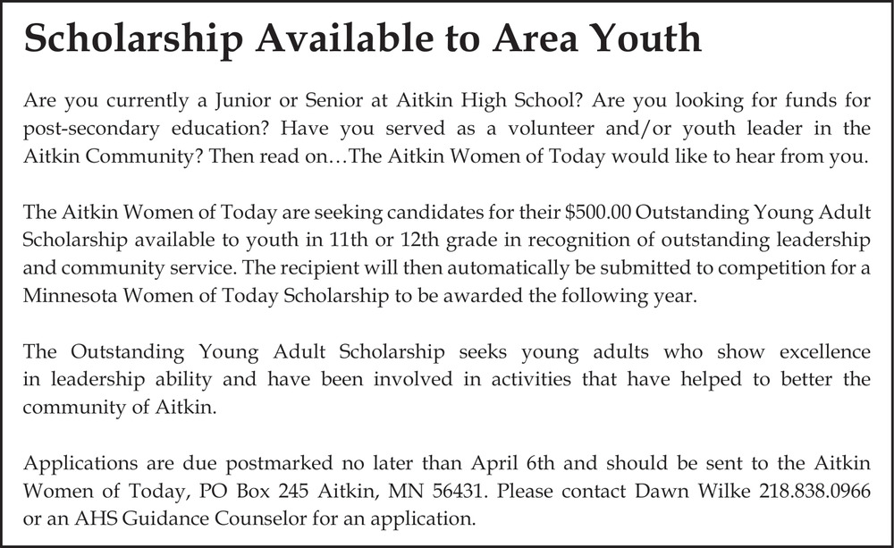 Young Adult Scholarship in Aitkin, MN
