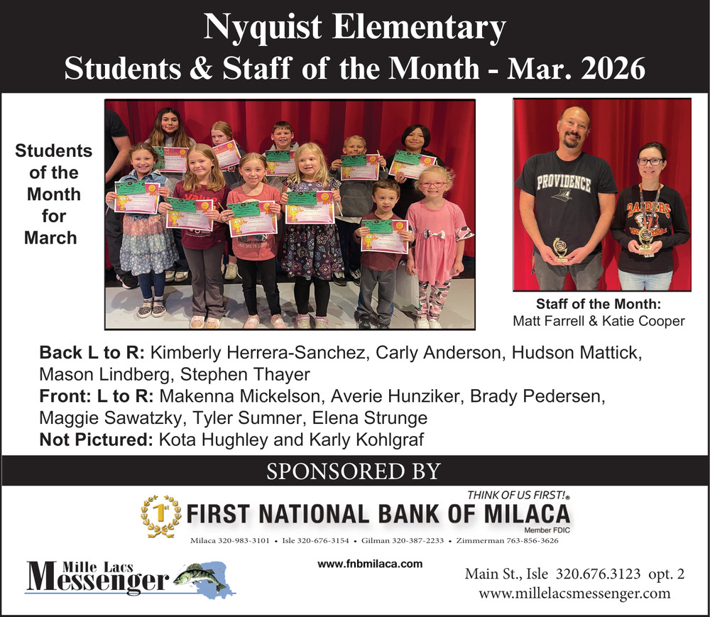 Apr 08, 2026. First National Bank of Milaca Banking Ads from Mille Lacs Messenger