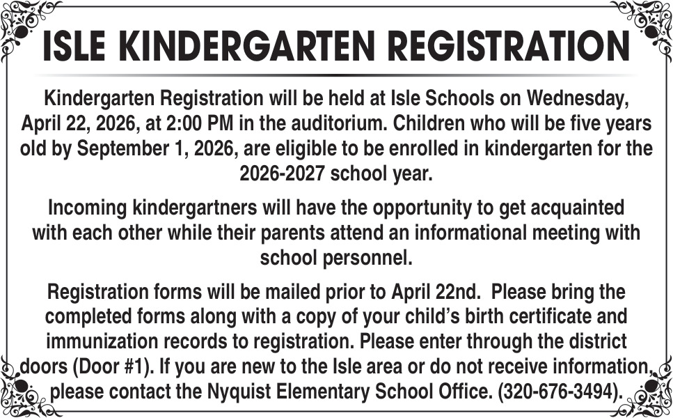 Apr 15, 2026. Isle School District #473 Education Ads from Mille Lacs Messenger